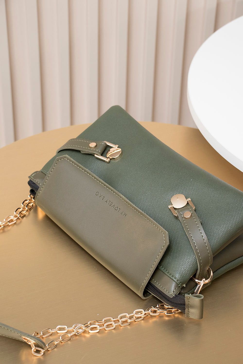Model mekane forme, izrađen od kombinacije visokokvalitetne eko kože i mreže s prednje i stražnje strane. Sastavljena je od dvije pregrade, što je čini vrlo praktičnom za svakodnevnu upotrebu. Uz torbicu dolaze dva remena, kratki remen od lanca s podebljanjima za rame.