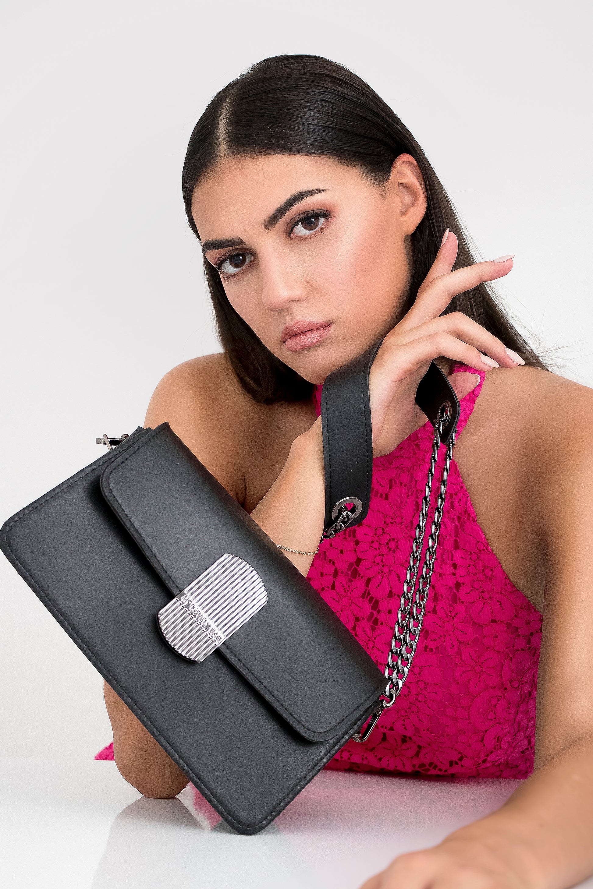 Evelyn is an elegant bag that comes in a sophisticated design, made of high-quality eco leather. It is composed of two compartments and closes with a unique Lovely buckle, which gives it a touch of luxury and functionality.