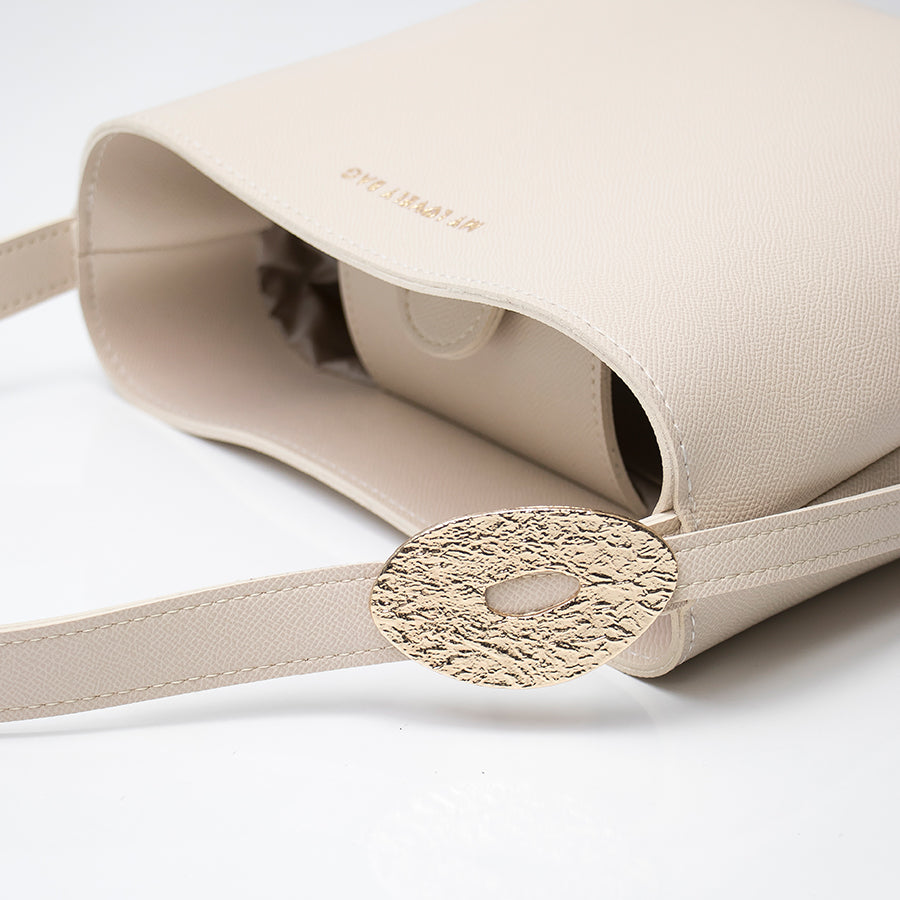 Simple yet striking, the Gabby bag captivates at first glance with its clean lines and unique strap decoration. Inspired by the classic bucket bag design, this model offers enough space and style for every day.