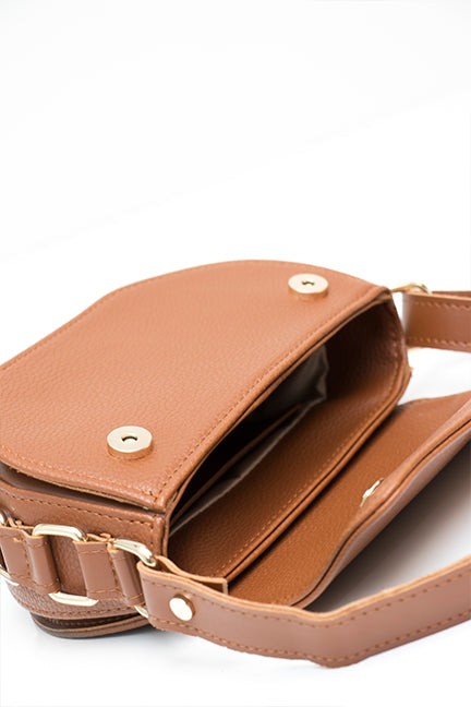 Torbica manjih dimenzija i neobičnog, blago zaobljenog oblika. Krasi je suptilni utisnuti My Lovely Bag natpis na poklopcu te zlatne karike na bočnim stranama.