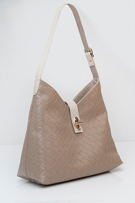 Elegantna ženska torba modernog dizajna i minimalističke forme s jednim glavnim pretincem koji pruža dovoljno prostora za svakodnevne potrepštine. Dodatni unutarnji džep sa zatvaračem i podesivi remen doprinose funkcionalnosti ove torbe koja je savršen izbor od poslovnih kombinacija do opuštenih dnevnih izlazaka.