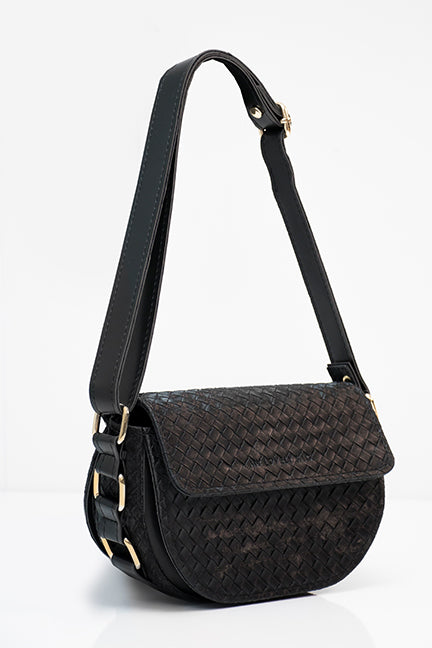 Torbica manjih dimenzija i neobičnog, blago zaobljenog oblika. Krasi je suptilni utisnuti My Lovely Bag natpis na poklopcu te zlatne karike na bočnim stranama.