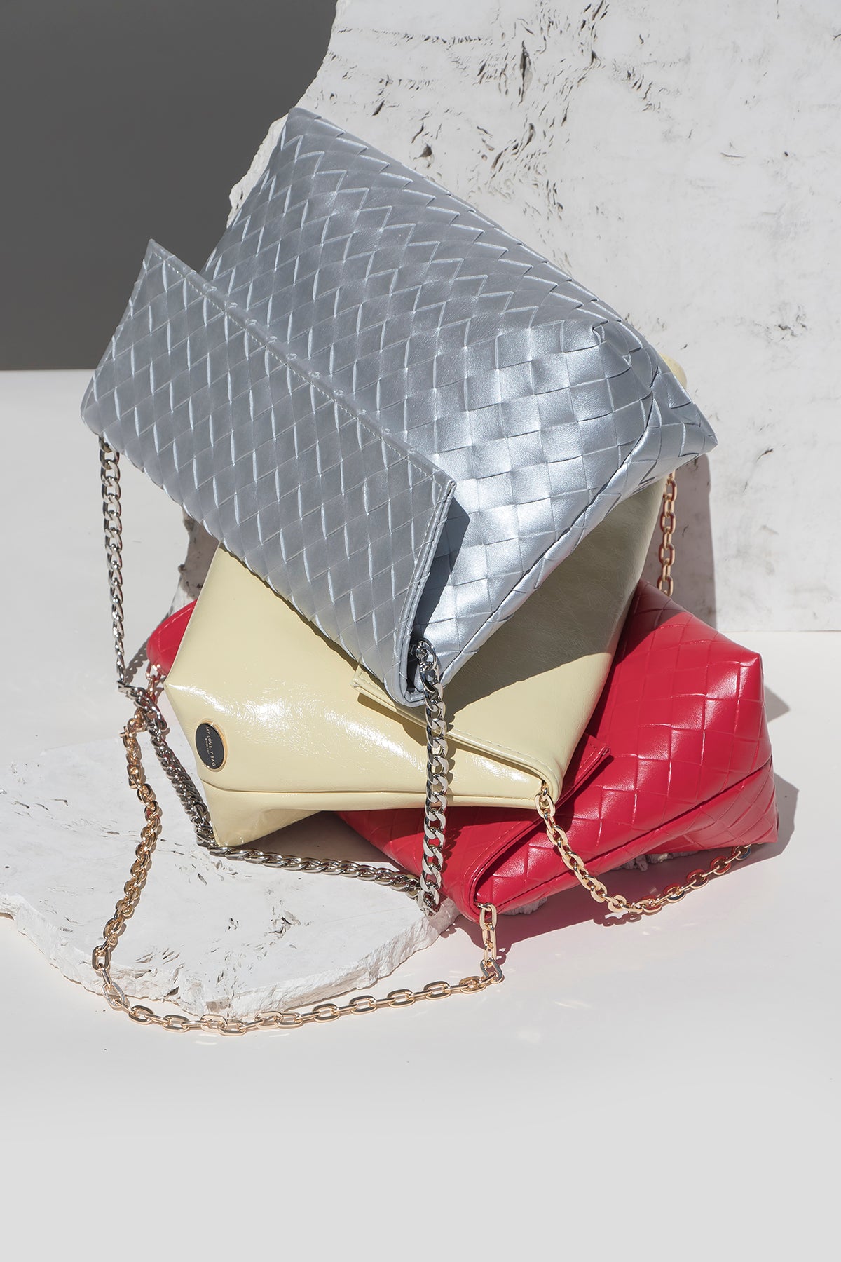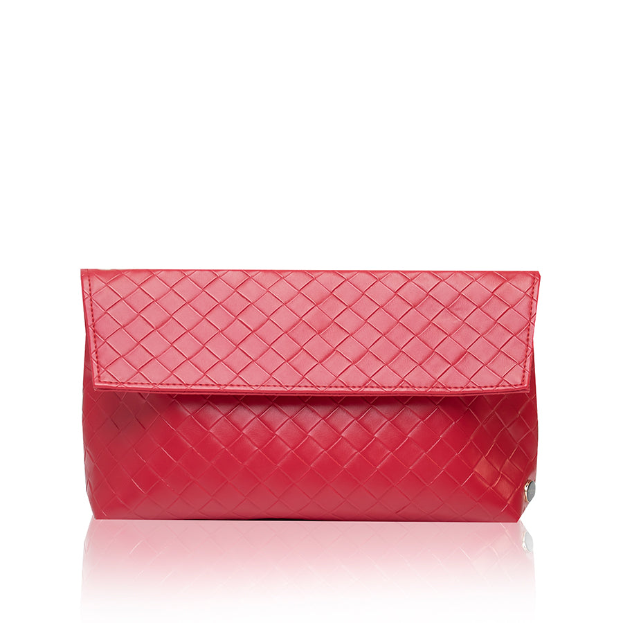Minimalistička i sofisticirana clutch torba izrađena od kvalitetnog materijala s reljefnom, pletenom teksturom koja daje dojam luksuza i dubine. Savršen je izbor za večernje izlaske, posebne prilike ili kao statement dodatak dnevnom outfitu.