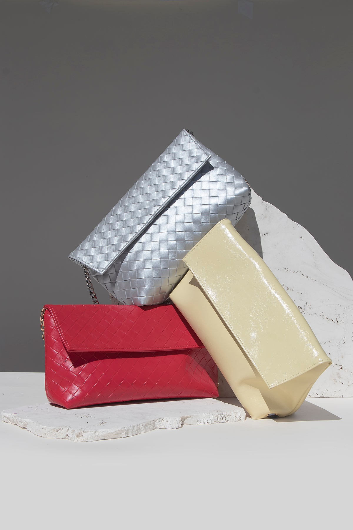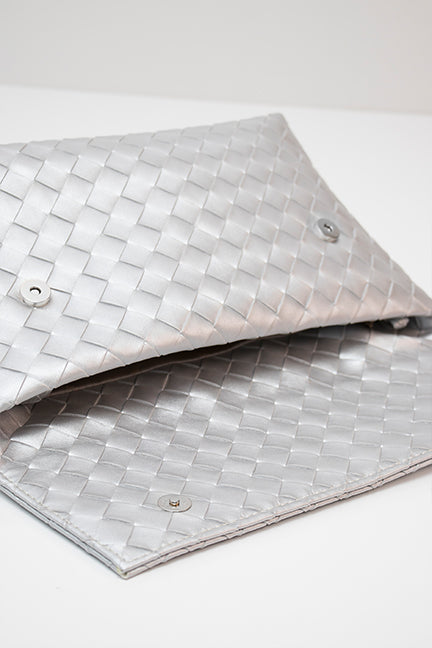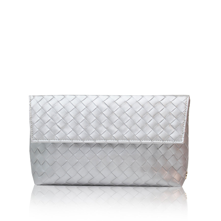 Minimalistička i sofisticirana clutch torba izrađena od kvalitetnog materijala s reljefnom, pletenom teksturom koja daje dojam luksuza i dubine. Savršen je izbor za večernje izlaske, posebne prilike ili kao statement dodatak dnevnom outfitu.