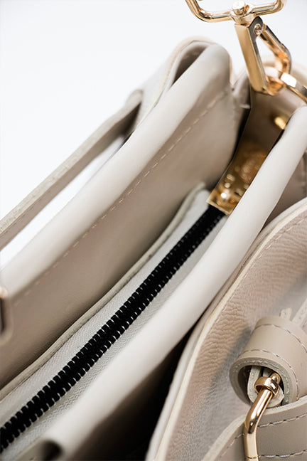 Blago trapezasta torba minimalističkog dizajna sastavljena od tri praktične pregrade. Ima ručkicu za nošenje u ruci te dugi podesivi remen za nošenje preko tijela ili na ramenu.